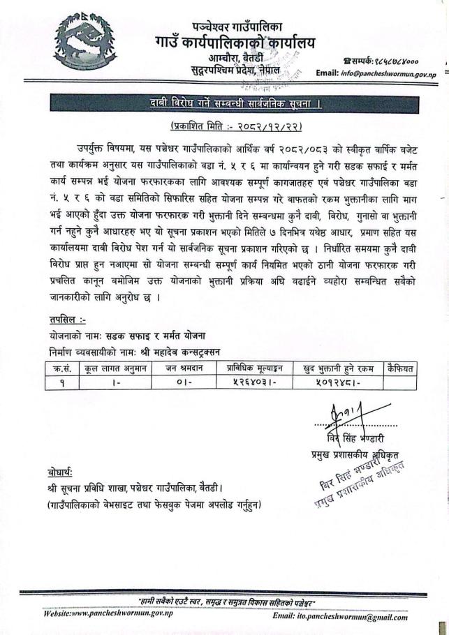 » दाबी बिरोध सम्बन्धी सूचना ।।