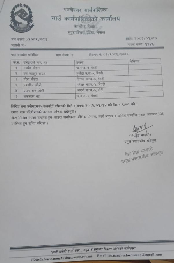 संक्षिप्त सुचि प्रकाशन गरिएको सूचना ।