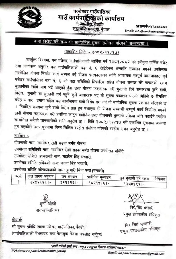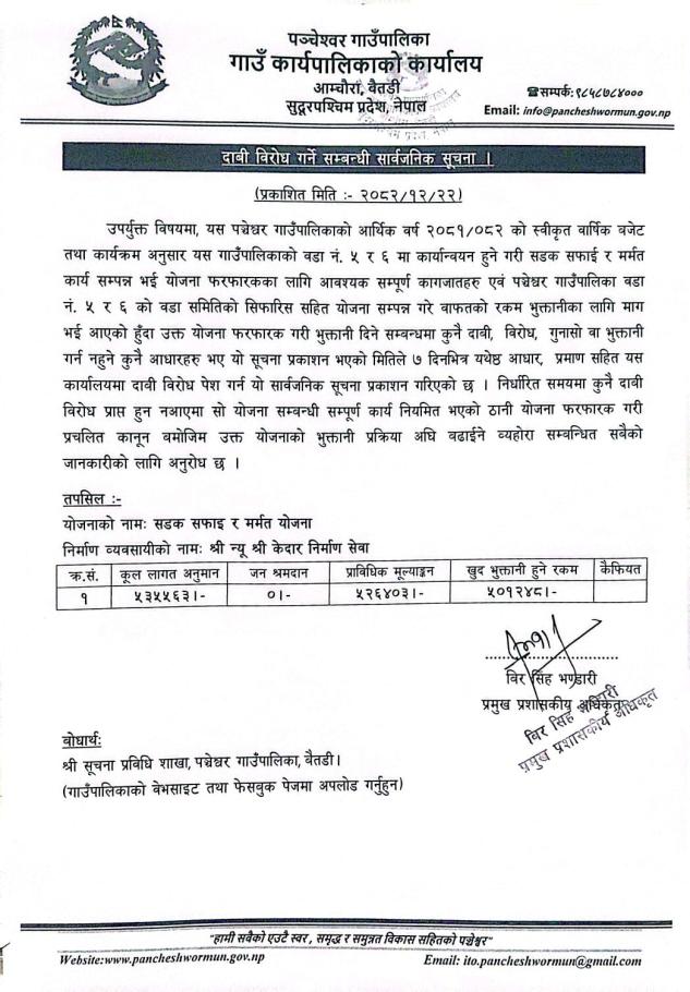 » दाबी बिरोध सम्बन्धी सूचना ।।