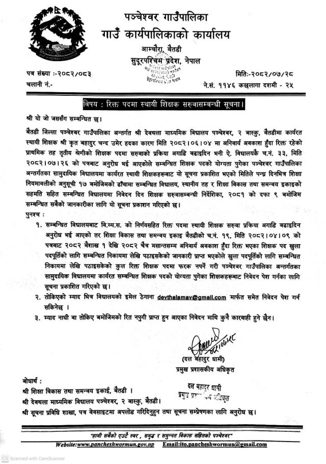 सूचना प्रविधि अधिकृत र जनस्वास्थ्य अधिकृत सेवा करारमा पदपुर्ति गर्ने सम्बन्धी सूचना ।
