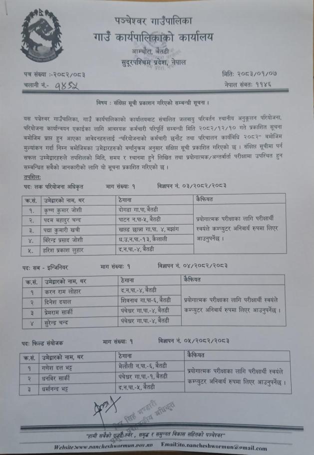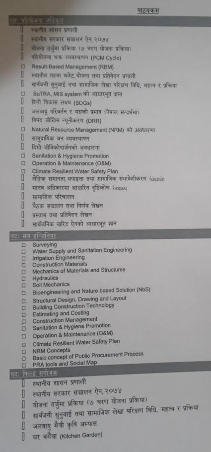 संक्षिप्त सुचि र पाठ्यक्रम प्रकाशन गरिएको सूचना ।